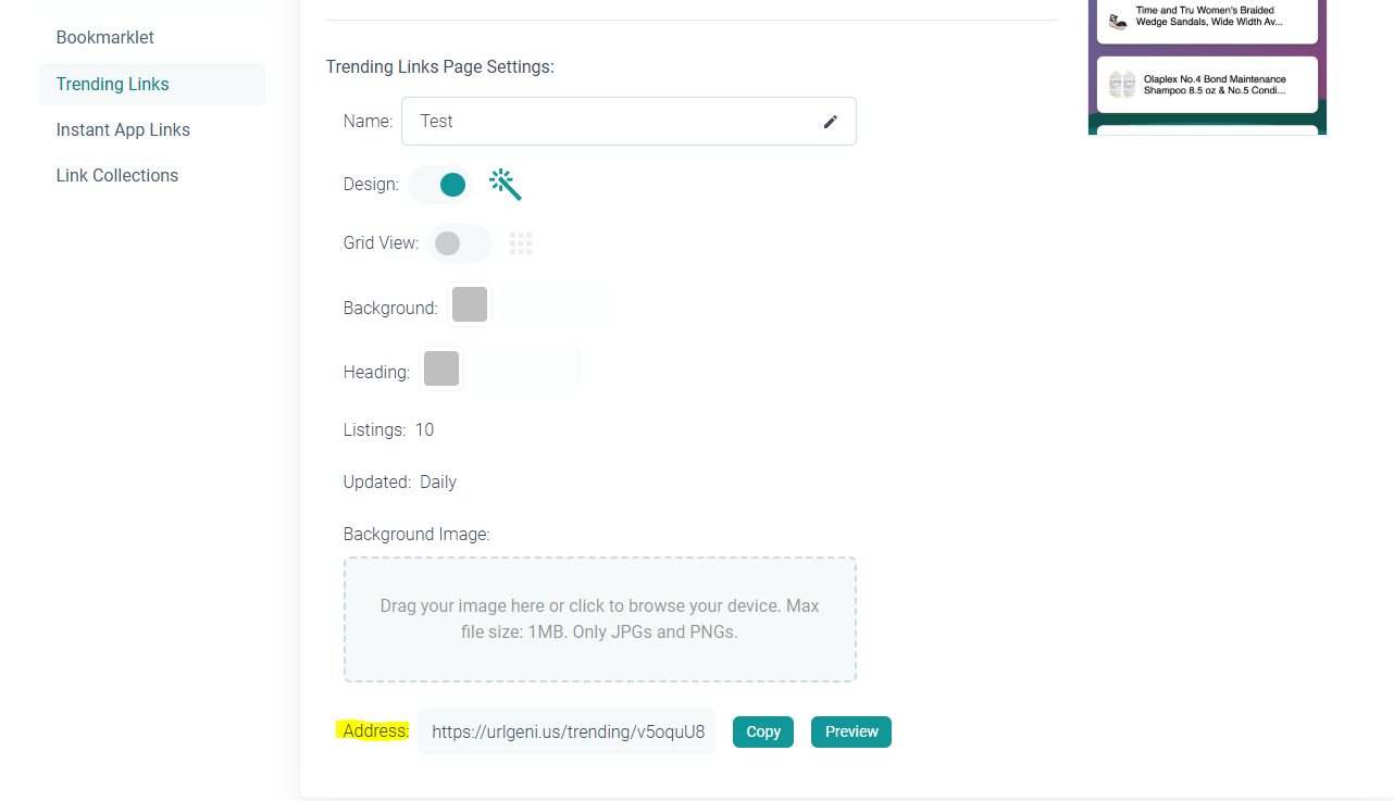 - In the settings for your new deep link, change the Default URL to the Link Collection Address you copied in Step 1.